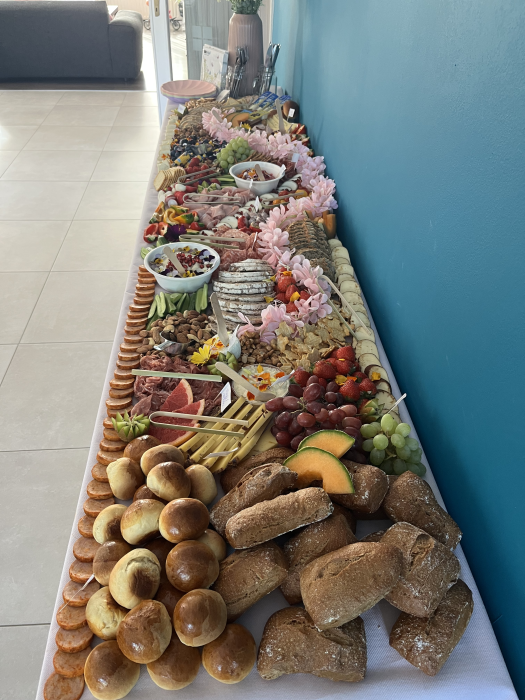 Een Grazing Table is een verfijnde en stijlvolle manier van catering, geïnspireerd door een Amerikaanse trend die Europa heeft veroverd. De tafel is een zorgvuldig samengestelde presentatie van premium kazen, charcuterie, vers brood, dips, groenten en fruit – alles met de hand geselecteerd voor zowel smaak als esthetiek. Elke Grazing Table wordt enkele uren voor je feest opgebouwd, helemaal vers en klaar voor je gasten.