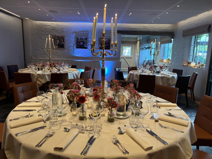 Met groepen vanaf 20 personen tot maximaal 60 gasten kan je terecht in Het Oude Restaurant. Omgevormd tot een echte feestzaal is dit de ideale locatie voor een intiemer feest. Bij mooi weer leent het terras en de binnenkoer zich ideaal tot het verzorgen van een exclusieve receptie. Bij minder goed weer kan de voorafgaande receptie doorgaan in de Graanschuur.
