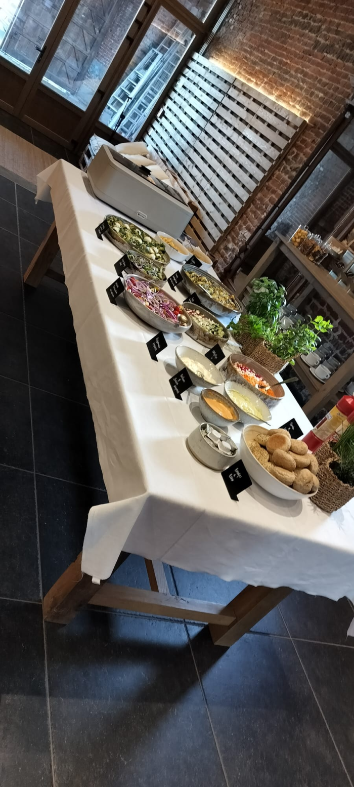 Geniet van een aperitief op onze gezellige binnenkoer en laat je betoveren door de unieke sfeer van onze 18e-eeuwse schuur. De authentieke houten balken, hoge plafonds en rustieke details maken deze ruimte tot een warme en stijlvolle setting voor elk event.