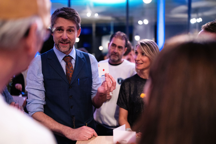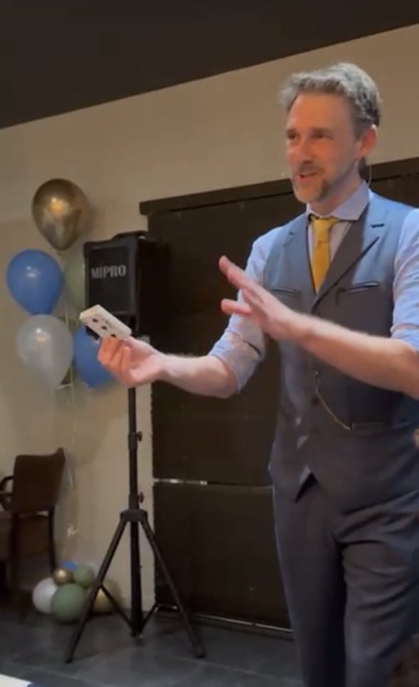 Met jarenlange ervaring in de event- en entertainmentsector biedt Koenraad dynamische en verfijnde goochelshows, perfect afgestemd op jouw gelegenheid. Of het nu gaat om een bedrijfsfeest, teambuilding, of privé-evenement, Koenraad weet zijn publiek keer op keer te verbazen en te verbinden.